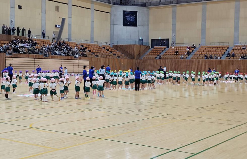 エフピコアリーナで運動会が行われました🏃自分たちで作った旗の周りを囲んで、いよいよスタートです💓最年少はサーキットに挑戦しま…