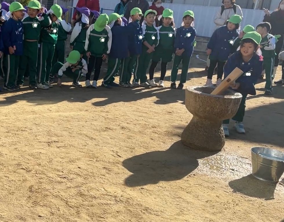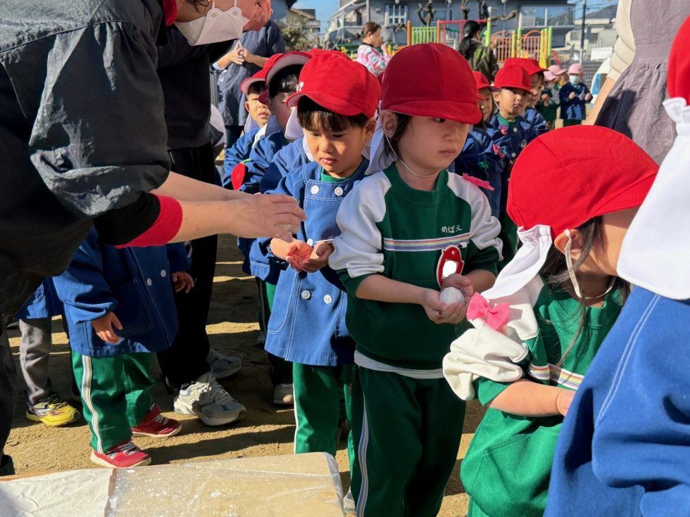 2025.12.23 12月18日 もちつき みんなが楽しみにしていた、もちつきがありました☺ 蒸したもち米を見せてもらうと、、、 ほかほかしていて、いい匂い👃✨ 年長さんは、一人ずつもちをつきました! 杵は少し重たいけど、頑張っています💪 友達が頑張っている姿を見て、 一緒に「よいしょ!よいしょ!」 つきたてのおもちをもらって、、、 「びよ~~~ん!!!」 「ちょっと味見してみようかな?😝」 笑顔があふれたもちつきでした💕 ◀ 前の記事へ ブログ一覧へ戻る