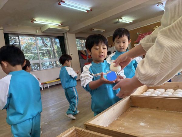 2025.12.26 12月19日(金) もちつき みんなでもちつきをしました!! 年長組は一人で杵を持ってもちをつきます✊ つきたてのおもち✨ 1人1つおもちをもらいます👐 みんなおもちを持って帰っておいしくいただきました😊 ◀ 前の記事へ ブログ一覧へ戻る